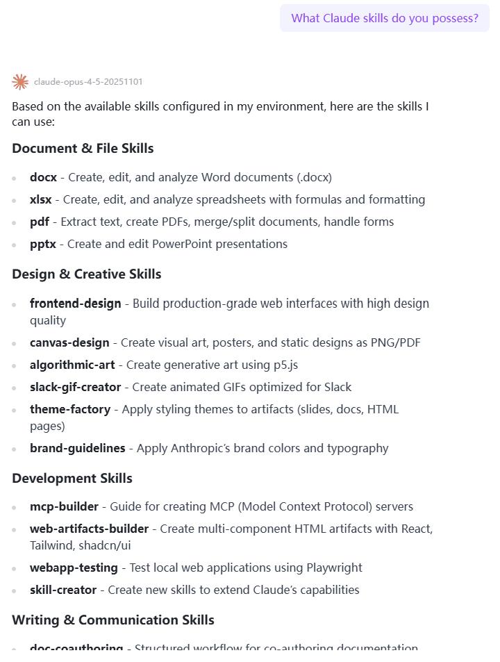 Pre-installed Skills Include