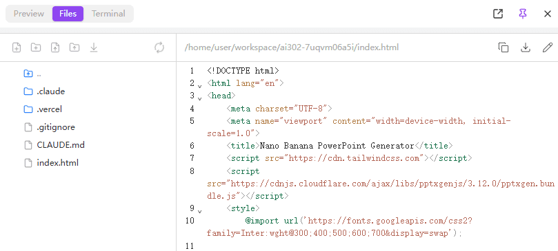 | Preview | Files | Terminal | |